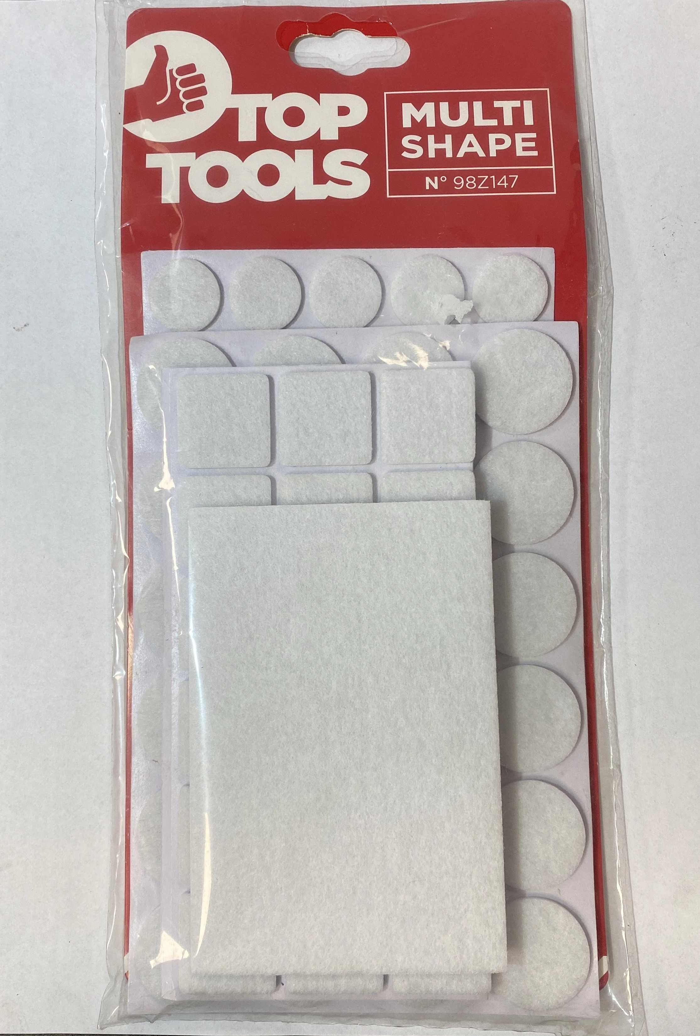 A Bútorcsúsztató filckészlet - Top Tools (fehér) 106 db-os termékünk 3 mm vastagságú, a készlet számos méretet és alakzatot tartalmaz. Ideális bútorok lábainak védelmének. Cikkszáma: 98Z147