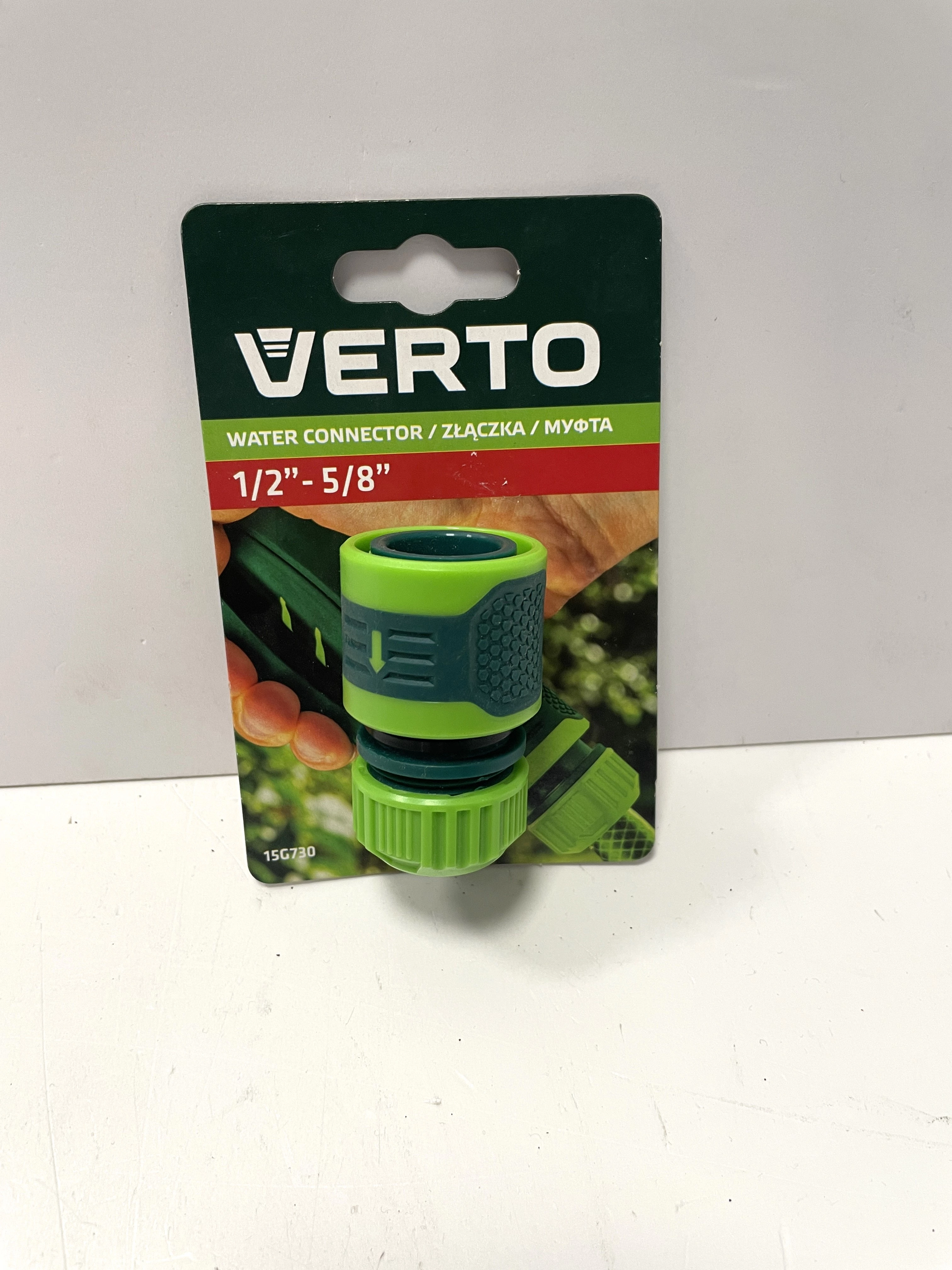 A Csatlakozó - Verto 1/2"- 5/8", kétkompenensű termék egy nagyon jó minőségű vízcsap csatlakozó, mely kiemelkedő műanyagokból készül így garantálva a hosszú élettartamot. Kialakítása hozzásegíti használóját, hogy egyértelmű legyen a felszerelése. Markolatát csuszásgátló gumival látták el, mely segíti a kényelmes alkalmazását. Cikkszáma: 15G730