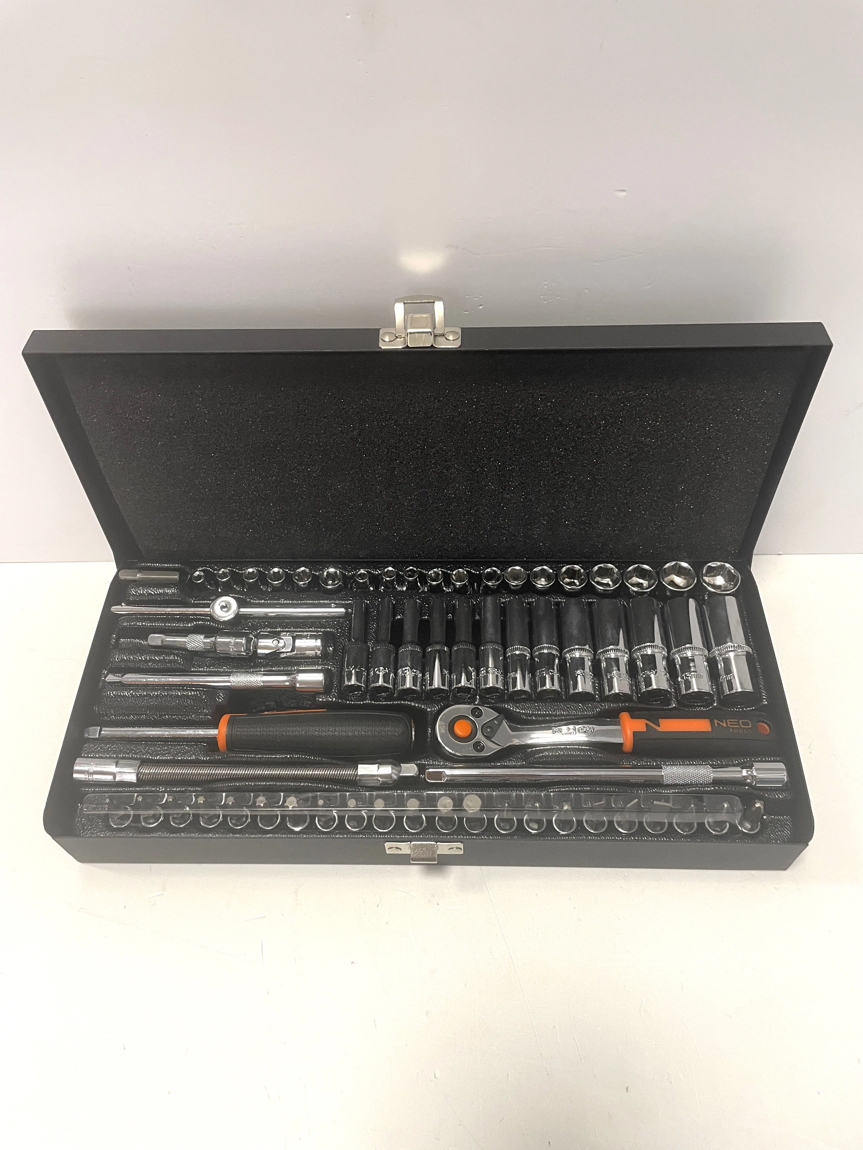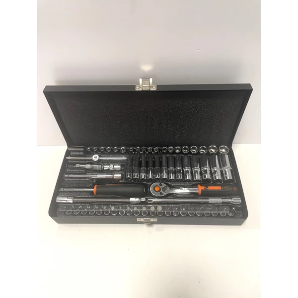 Barkácsoláshoz vagy ipari felhasználáshoz válaszd bátran a króm-vanádium acélból készült Dugókulcskészlet 1/4" - Neo Tools (63 részes) termékünket, mely számtalan hatlapú dugókulcsot tartalmaz 4 mm-től egészen 14 mm-ig. A készlet további tartalma: E- típusú dugókulcsok (Torx csavarokhoz), négy hosszabbító, csukló, T-hajtókar, ¼"-os csavarhúzó markolat. A táskában található csavarbehajtó közdarab , mellyel a készlet valamennyi darabját alkalmassá teszi elektromos szerszám tartozékává. A praktikus és kis helyigényű tárolás érdekében a készlet egy fém holdtáskában kapott helyet. Cikkszáma: 10-008