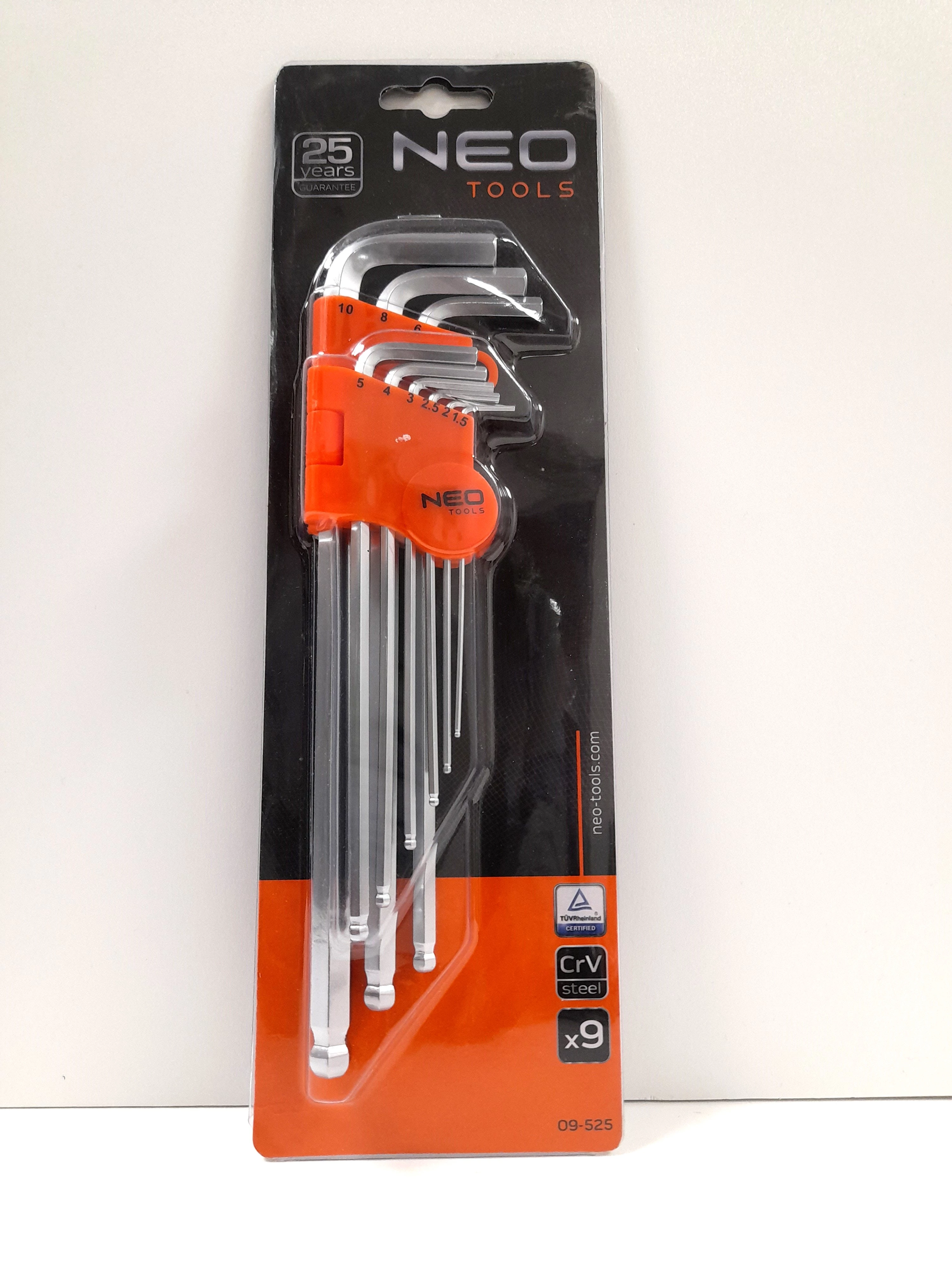 A Imbuszkulcs készlet - Neo Tools, gömb 1,5-10 mm (9 részes) 09-525 termék egy kiváló minőségű készlet, melyben 1,5 mm – 10 mm közötti méretekben találhatóak meg a szerszámok. Hosszú élettartamát a króm- vanádium acélnak köszönheti, a mágneses gömbfej (max. 30º‑os munkaszöggel) pedig biztonságos és kényelmes munkavégzést eredményez.