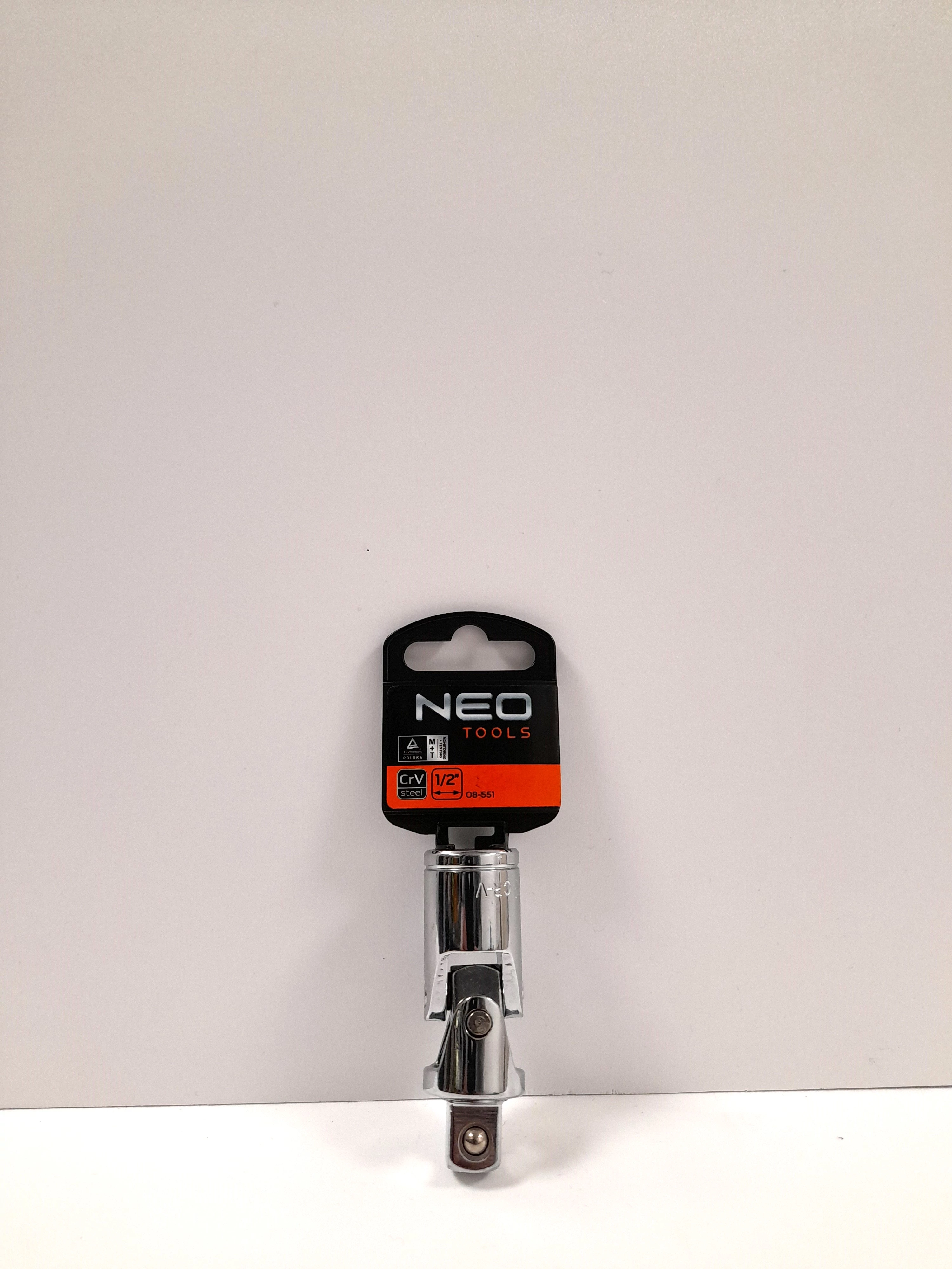 A Kardáncsukló - Neo Tools 1/2" 65 mm 08-551 termék egy kiváló minőségű, ½”-os univerzális csukló, mely króm-vanádium acélból készült. Anyagának köszönhetően hosszú élettartama garantált. A termék kiváló minőségét és megbízhatóságát bizonyítja a TÜV Rheinland tanúsítvány.