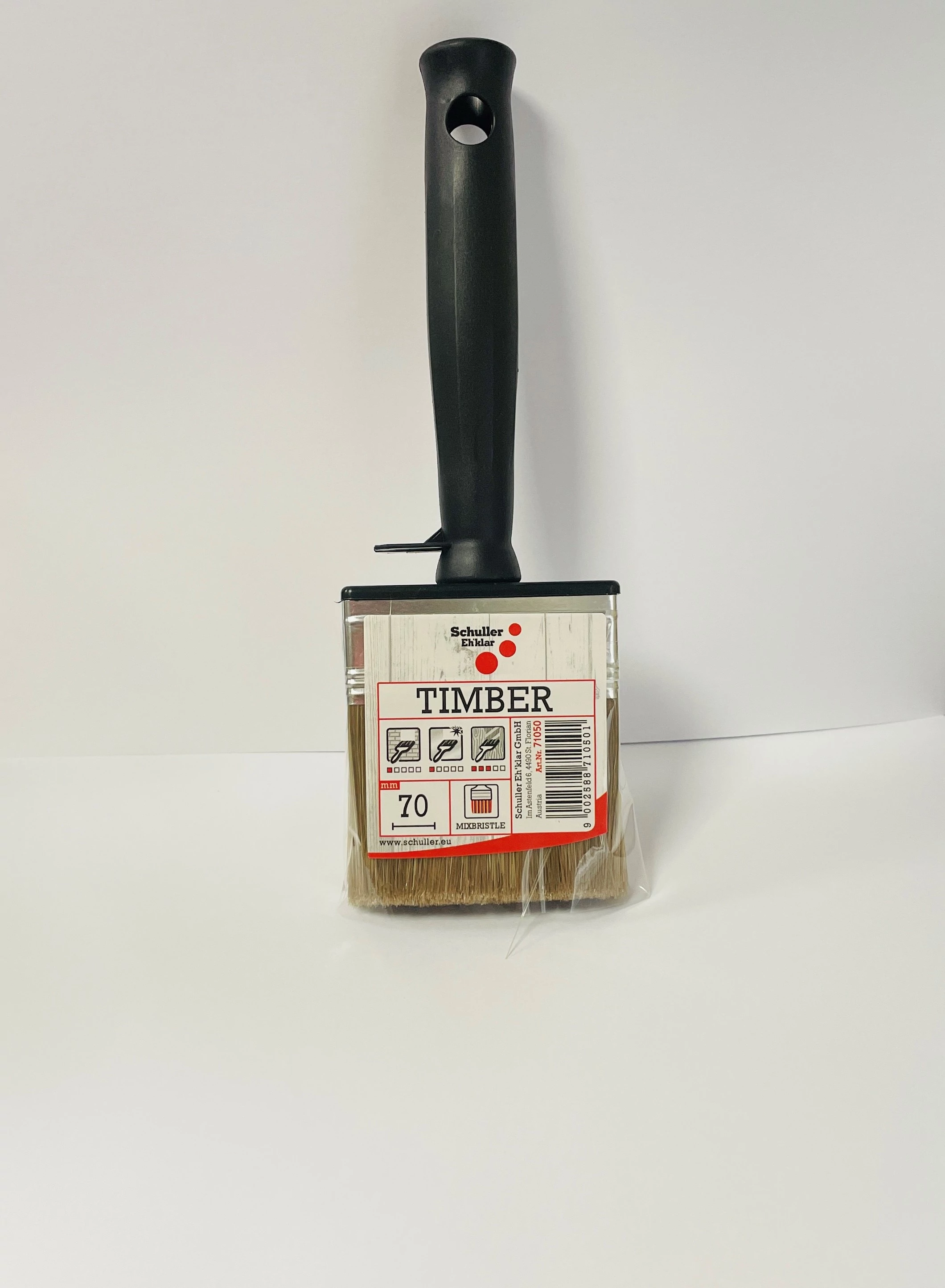 A Ecset favédőszerekhez - Schuller Timber FS 70 mm terméket rezezett befogóval látták el és kifejezetten lazúrokhoz fejlesztették ki. A sörtekeveréket amiből az ecset készült hígfolyós anyagokhoz készítették. Cikkszáma: 71050