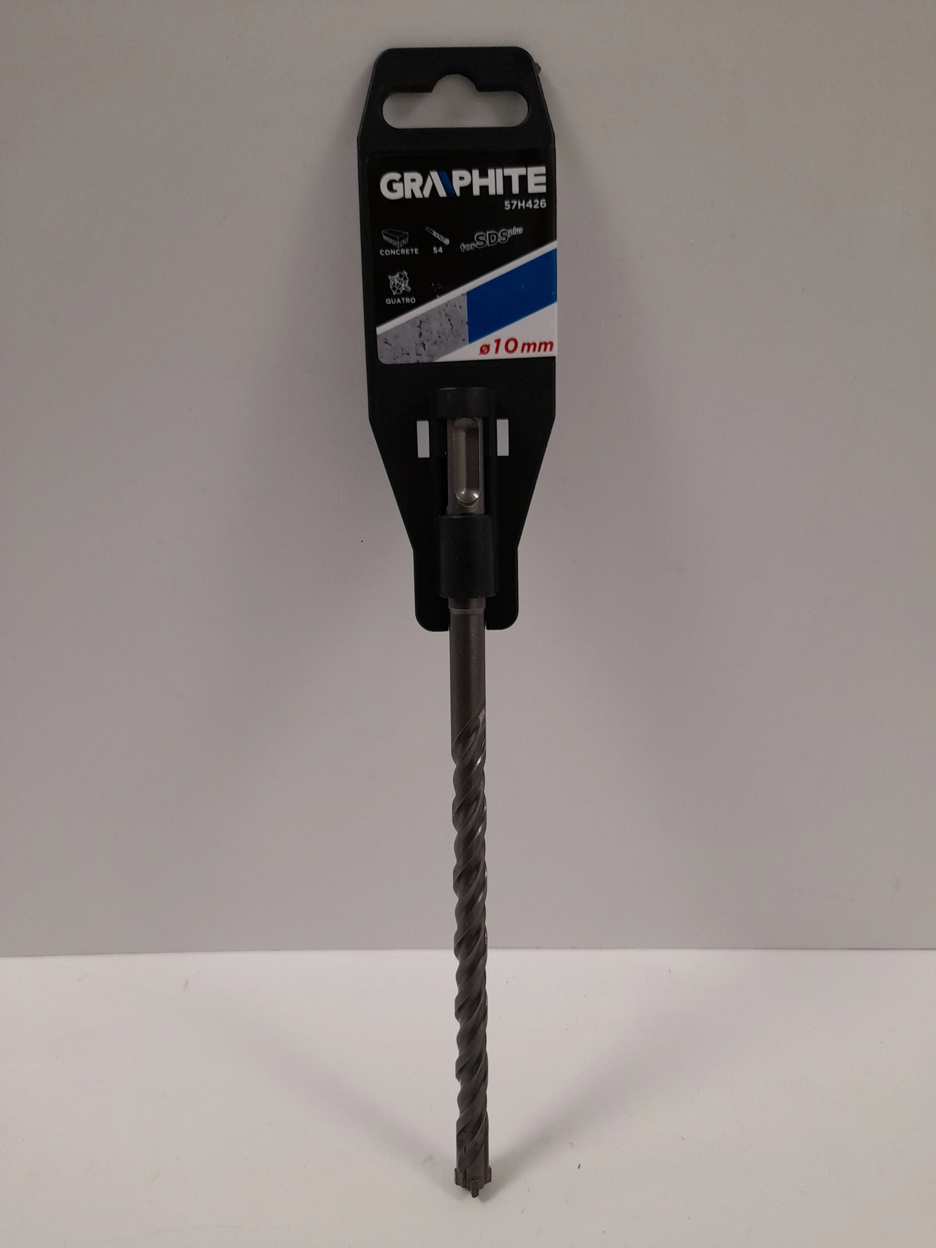 A Kőzetfúrószár - Graphite SDS Plus 10 x 210 mm, 4 élű (57H426) termékünk hatékony betonfúrást tesz lehetővé a speciális videabetétes 4 élű kialakításának köszönhetően. A fúrószár túlmelegedésének elkerülése érdekében, kialakításra került egy S4 típusú dupla spirál, mely biztosítja a megfelelő anyagelvezetést.