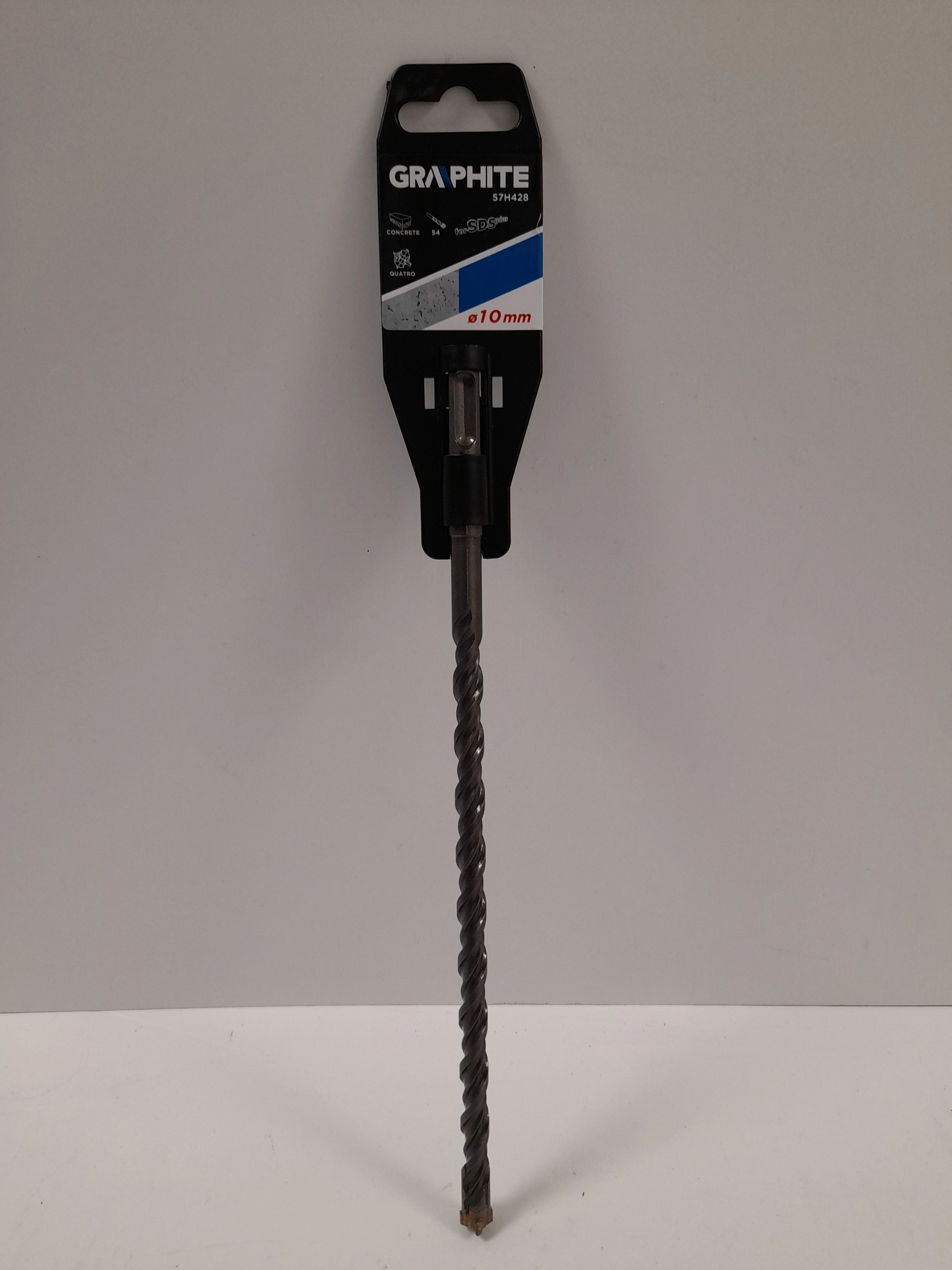 A Kőzetfúrószár - Graphite SDS Plus 10 x 260 mm, 4 élű (57H428) termékünk hatékony betonfúrást tesz lehetővé a speciális videabetétes 4 élű kialakításának köszönhetően. A fúrószár túlmelegedésének elkerülése érdekében, kialakításra került egy S4 típusú dupla spirál, mely biztosítja a megfelelő anyagelvezetést.