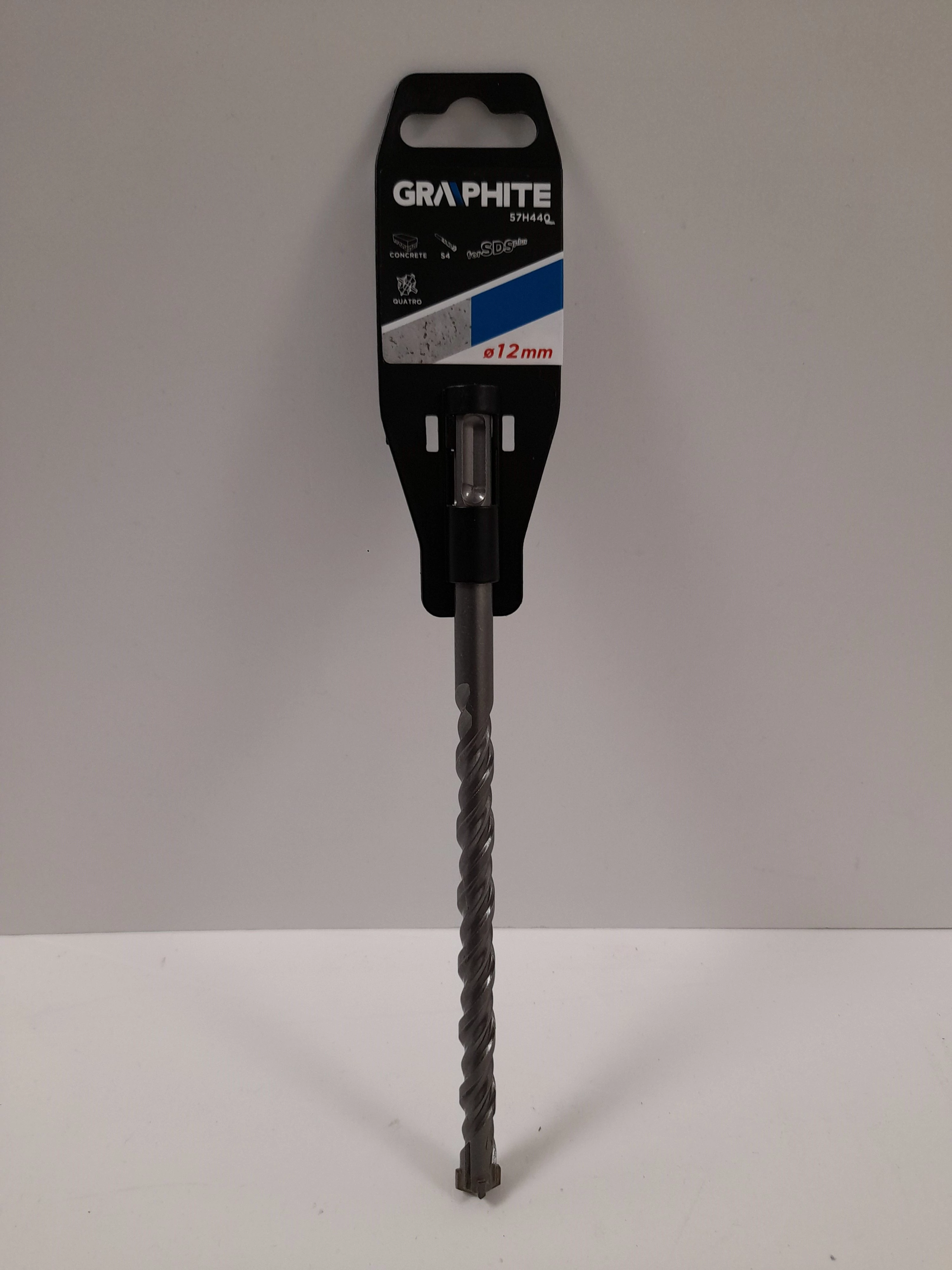 A Kőzetfúrószár - Graphite SDS Plus 12 x 210 mm, 4 élű (57H440) termékünk hatékony betonfúrást tesz lehetővé a speciális videabetétes 4 élű kialakításának köszönhetően. A fúrószár túlmelegedésének elkerülése érdekében, kialakításra került egy S4 típusú dupla spirál, mely biztosítja a megfelelő anyagelvezetést.