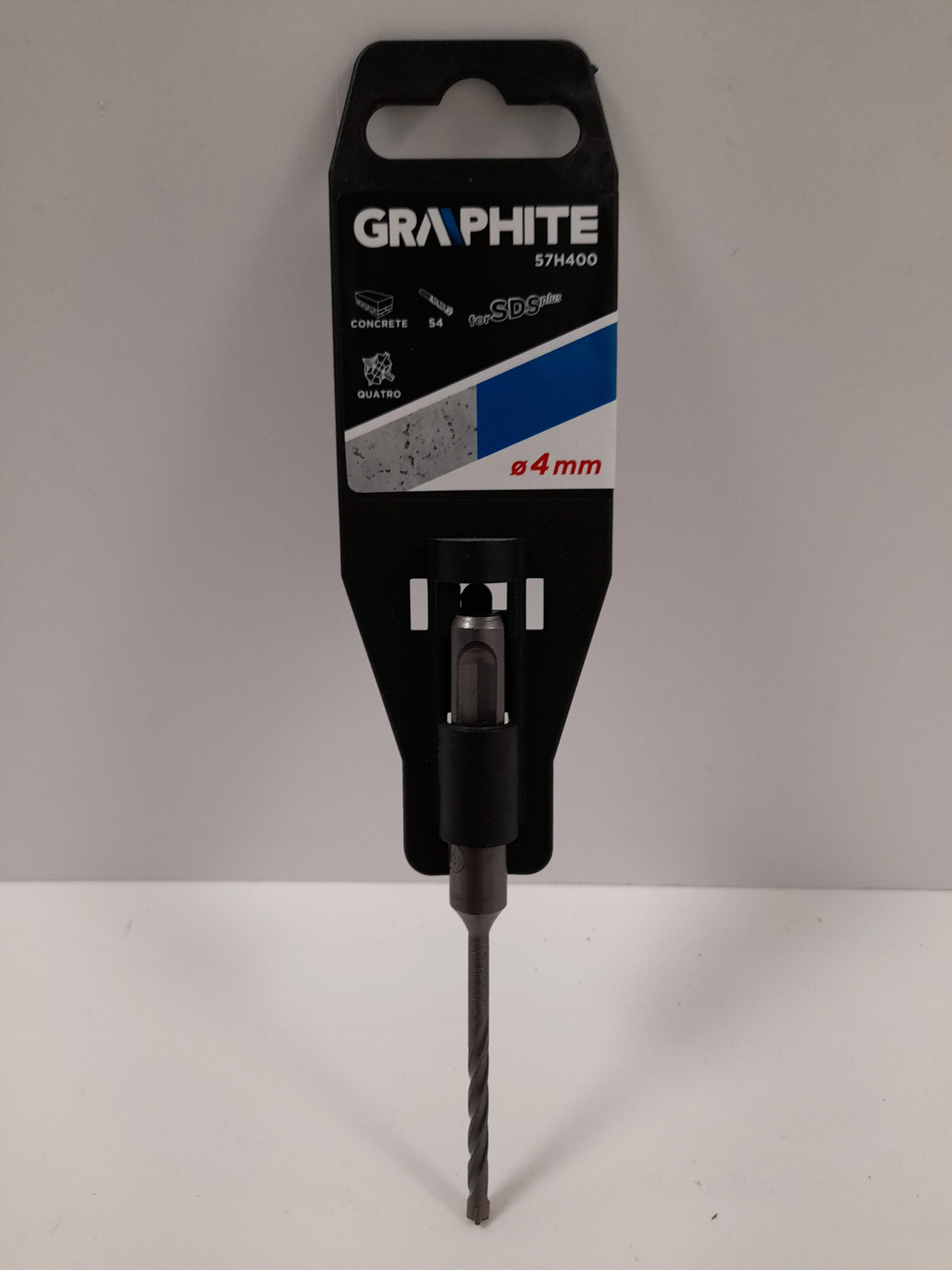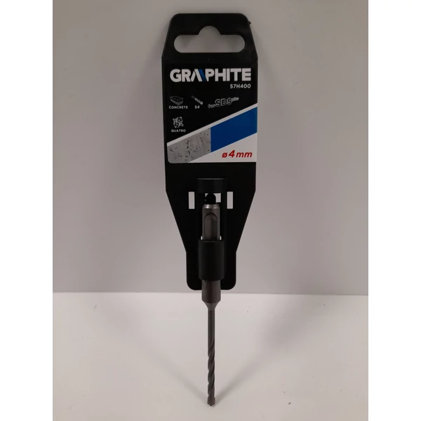 A Kőzetfúrószár - Graphite SDS Plus 4 x 110 mm, 4 élű (57H400) termékünk hatékony betonfúrást tesz lehetővé a speciális videabetétes 4 élű kialakításának köszönhetően. A fúrószár túlmelegedésének elkerülése érdekében, kialakításra került egy S4 típusú dupla spirál, mely biztosítja a megfelelő anyagelvezetést.