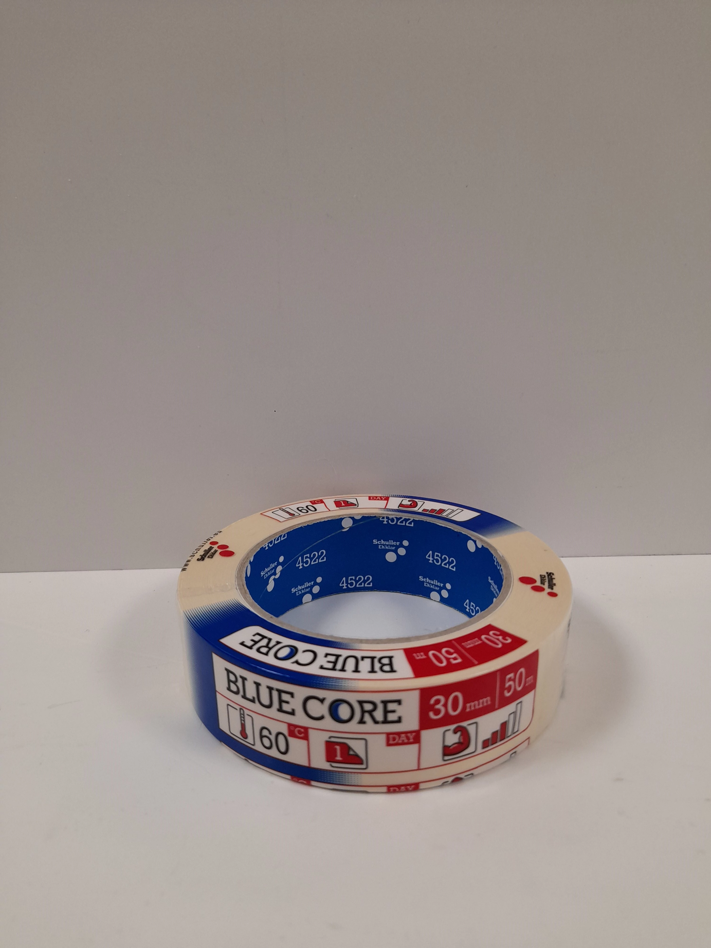 A Krepp szalag - Schuller Blue Core 30 mm x 50 m 45226 takarószalagot mázoló vagy festő munkákhoz javasoljuk. Alkalmas minden oldószerrel és vízzel higítható lakk és festék számára. Kreppelt vagy sima papírhordozóval lett ellátva.
