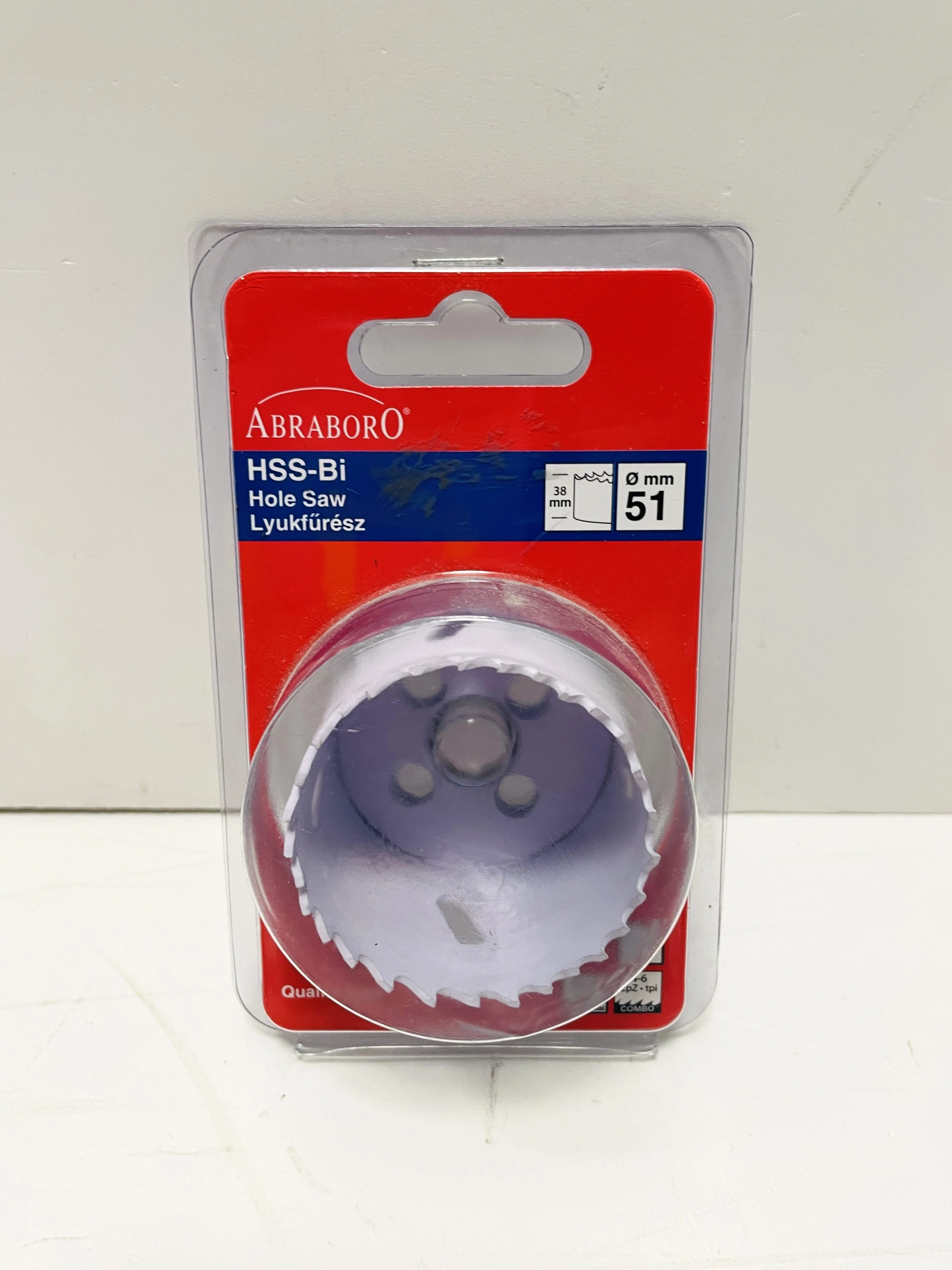 A Lyukfűrész 38 x 51 mm (HSS-Co) - Abraboro 070830051000 egy ipari minőségű termék, melynek 38 mm a fúrásmélysége.
