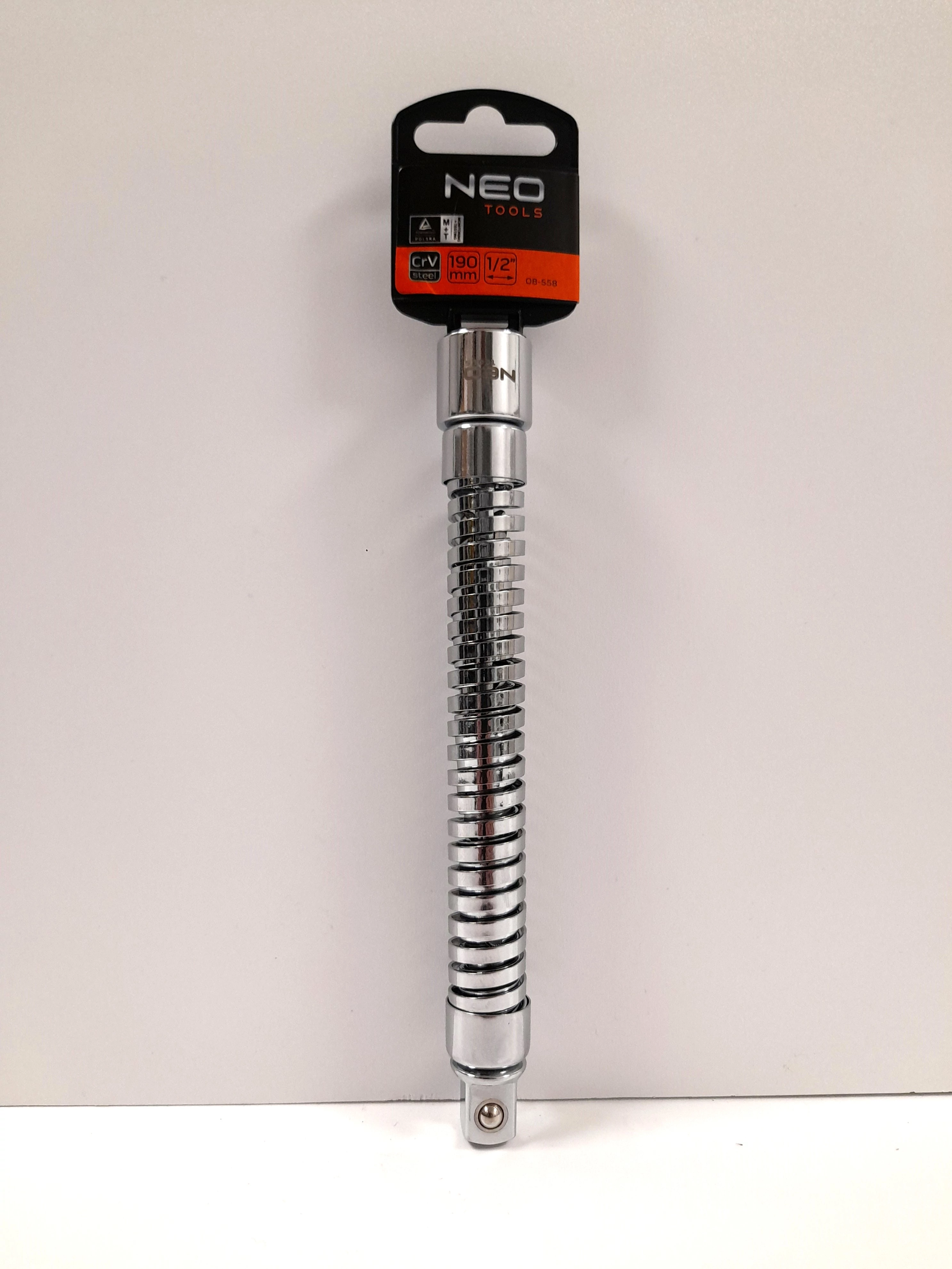 A Toldószár (flexibilis) - Neo Tools 1/2" 190 mm 08-558 termék egy kiváló flexibilis hosszabbító, mely króm-vanádium acélból készült, ezzel biztosítva a termék hosszú élettartamát. Nagymértékben megkönnyíti a munkát a nehezebben hozzáférhető területeken. A szerszám minőségét bizonyítja a TÜV tanúsítvány.