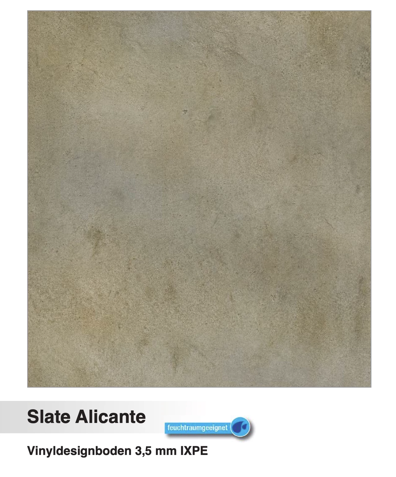 A Slate Alicante dekor a természetes kő karakterét adja vissza, miközben melegebb tapintású és halkabb járású felületet biztosít, mint a hagyományos járólapok. Nem hideg, nem reped, és könnyen tisztán tartható.